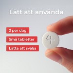 Rekommenderad daglig dos: 2 tabletter. Rekommenderad daglig dos bör inte överskridas. Kosttillskott ersätter inte en varierad kost. Det är viktigt med en mångsidig och balanserad kost samt hälsosam livsstil. När du är gravid eller använder medicin rekommenderar vi att du konsulterar en läkare innan du använder kosttillskott. Förvaras torrt i rumstemperatur och borta från direkt solljus. Förvaras oåtkomligt för barn. Skall inte användas av barn under 18 år.