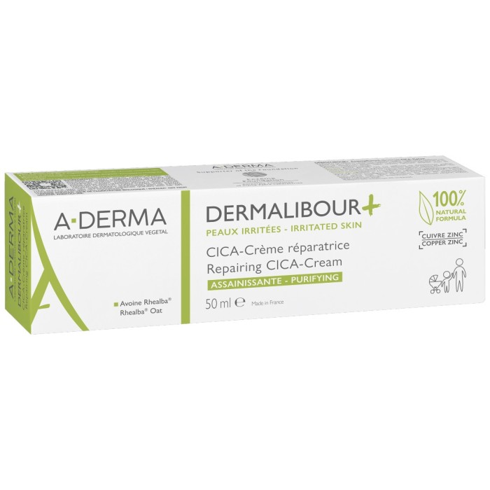 Dermalibour+ Repairing CICA-Cream från A-Derma är en mjukgörande hudkräm med lugnande egenskaper. Krämen är framtagen för att bidra till snabb lindring av mycket torr hud och hudrodnader. Krämen är baserad på det ekologiska havreextraktet Rhealba® Oat med fuktgivande egenskaper. Hudkrämen innehåller även zinkoxid och fuktgivande glycerin samt kopparsulfat som kan verka förebyggande mot irritation i huden.