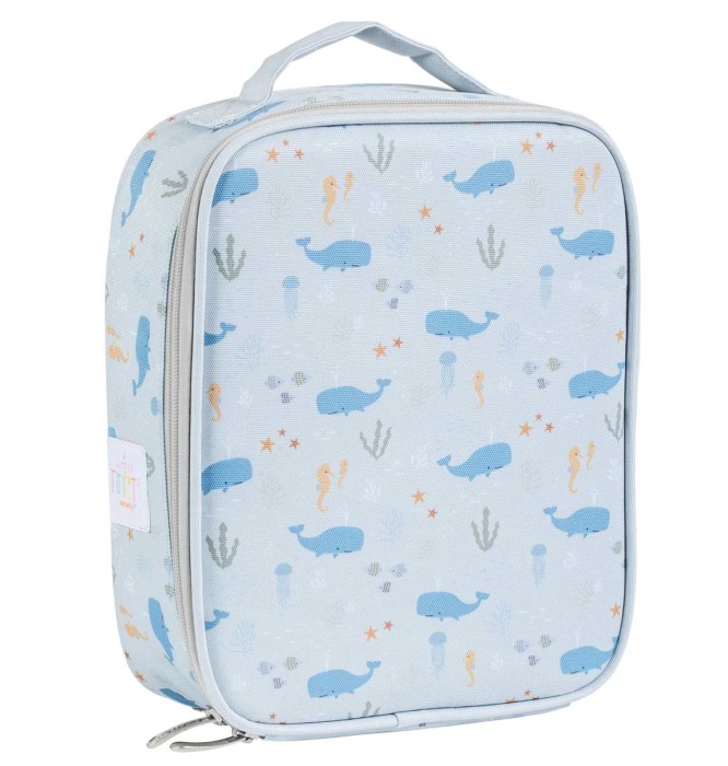A Little Lovely Company Kylväska Ocean har plats för matlåda, frukt och juice. Kylväskan kanske är perfekt att ta med på picknicken eller på en dagsutflykt. Den isolerade väskan har ett praktiskt handtag, stängs enkelt med dragkedja och är tillräckligt stor för att rymma flera lunchsaker.