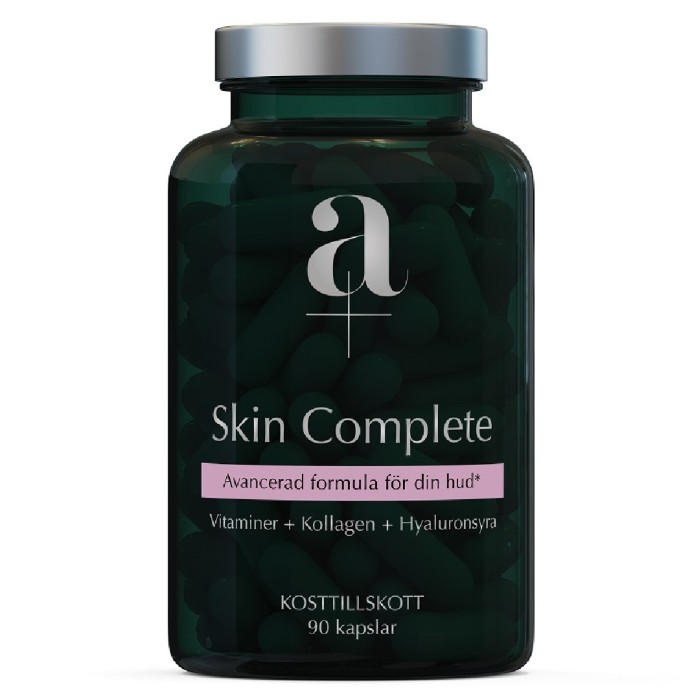 A+ Skin Complete är ett kosttillskott som innehåller hydrolyserat typ I-kollagen från fisk. Typ I är den vanligaste formen av kollagen i kroppen och den finns framför allt i stora mängder i hud, hår och naglar.