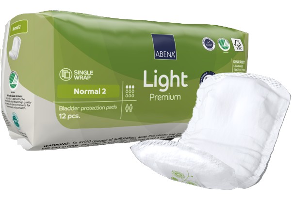 Abena Light är ett sortiment av kroppsformade skydd mot urinläckage, som kan användas av kvinnor vid lätt till måttlig inkontinens. Skyddet har självhäftande tejp och en högeffektiv kärna med Top-Dry-teknik som skyddar och vårdar huden genom att hålla det exponerade området torrt och behagligt även efter flera läckage.