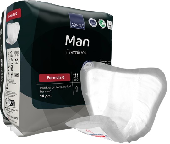 Abena Man Premium har ett extra mjukt ytskikt med mikrohål för att ge en behaglig känsla. Den högeffektiva kärnan med Top-Dry-teknik skapar snabb absorption och en torr yta även efter flera läckage för att skydda huden. Skyddet har en hög andningsförmåga, och är designat med ett unikt barriärsystem med inbyggda fickor för extra säkerhet. Odörsystemet minskar risken för oönskad lukt.