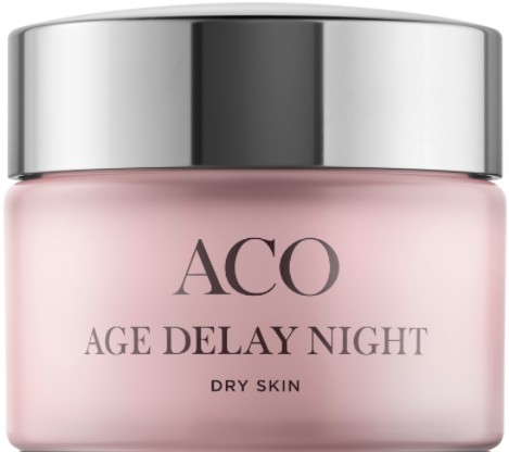 Age Delay Night Cream Dry Skin från ACO är en rik och närande antiage-nattkräm för torr hud. Förutom att den återfuktar huden verkar Age Delay nattkräm för att öka hudens kollagenproduktion för att förbättra hudens elasticitet. Gör huden slätare och fyller ut fina linjer och rynkor.