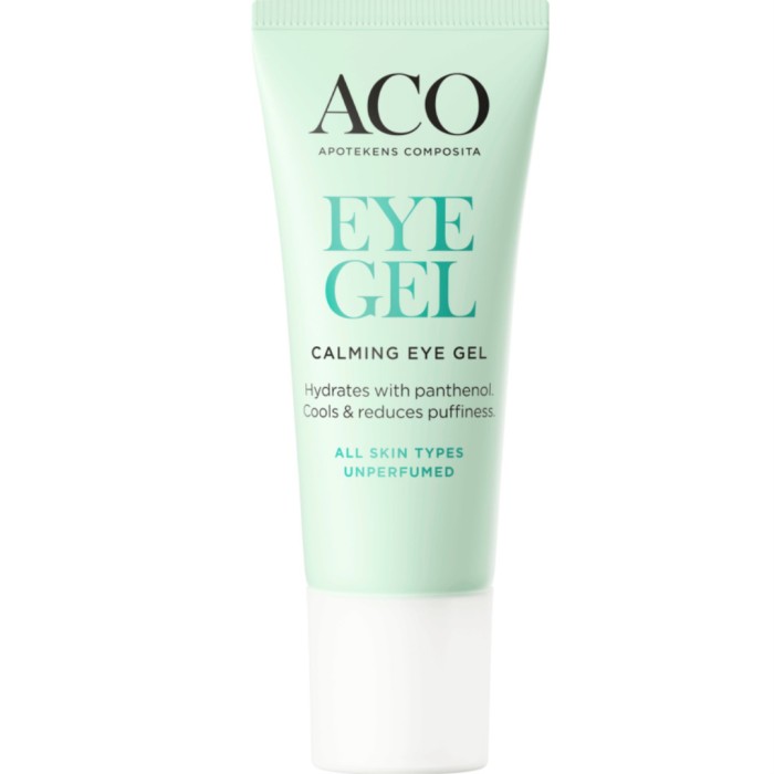 ACO Face Calming Eye Gel är en svalkande ögongel med pantenol. Gelen bidrar till att reducera påsar under ögonen och återfuktar huden i upp till 24 timmar. Oparfymerad.