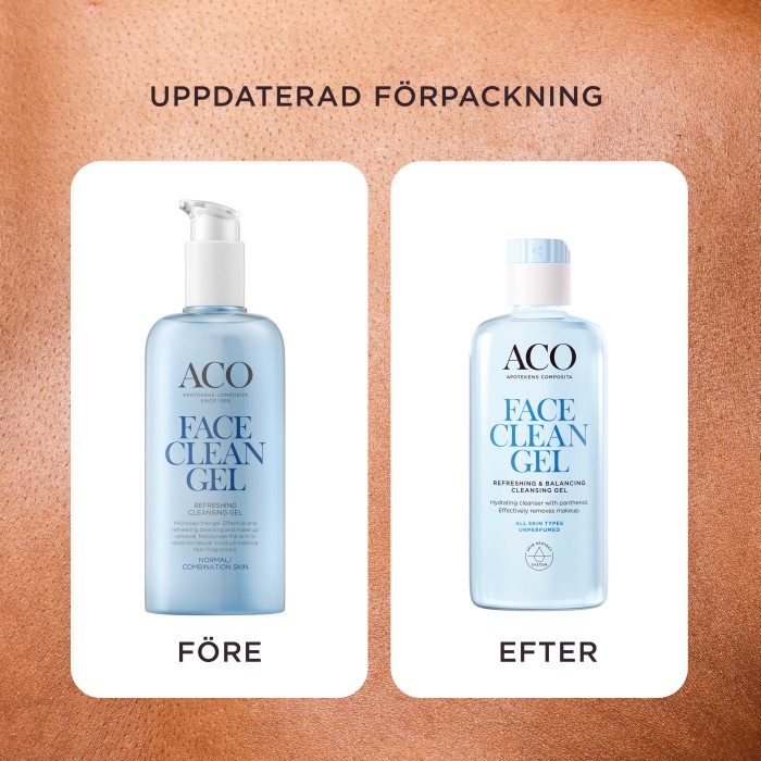 ACO Face Refreshing & Balancing Cleansing Gel är en effektiv ansiktsrengöringsgel med pantenol. Rengöringen hjälper till att bevara hudens naturliga fuktbalans. ACO Cleansing Gel tar bort smink och orenheter och ger en fräsch känsla. Kan användas för rengöring morgon och kväll. Oparfymerad.