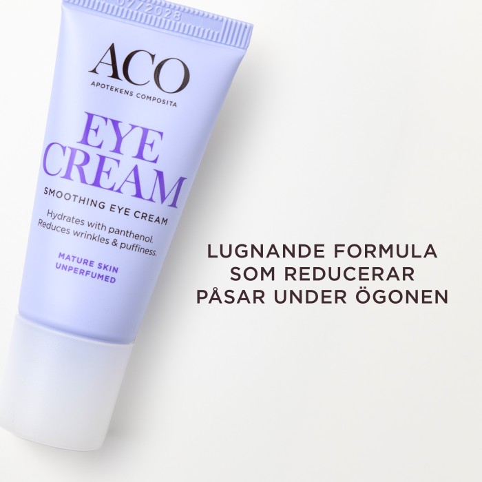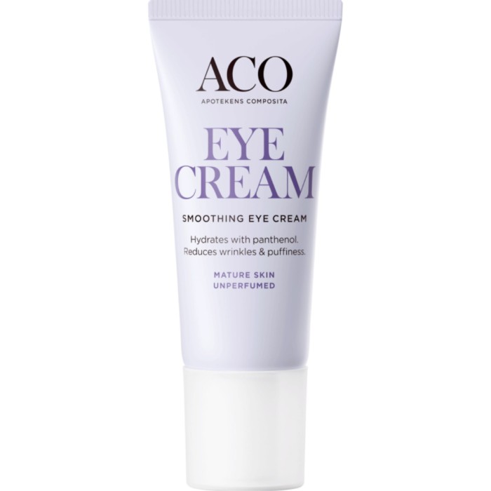 ACO Face Smoothing Eye Cream är en oparfymerad ögonkräm med pantenol. Ögonkrämen reducerar rynkor och återfuktar huden i upp till 24 timmar. Använd morgon och kväll för att vårda och återfukta huden under ögonen.