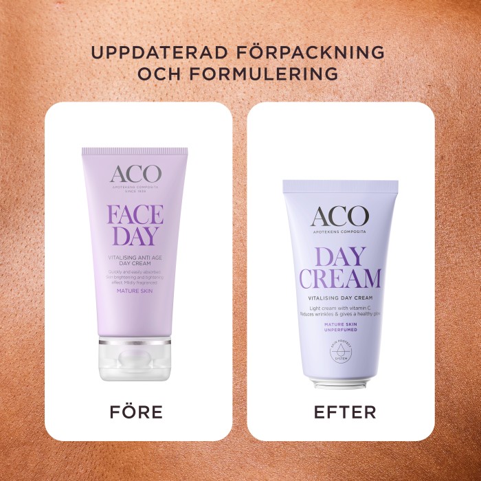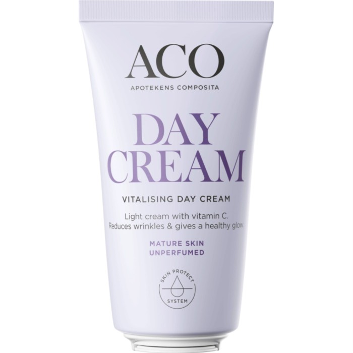 ACO Face Vitalising Day Cream är en oparfymerad dagkräm med vitamin C för mogen hud. Ansiktskrämen bidrar till att reducera rynkor och återfuktar huden i upp till 24 timmar. Den jämnar ut huden och stärker hudbarriären, samtidigt som den ger huden lyster. Går bra att använda under smink. Oparfymerad.
