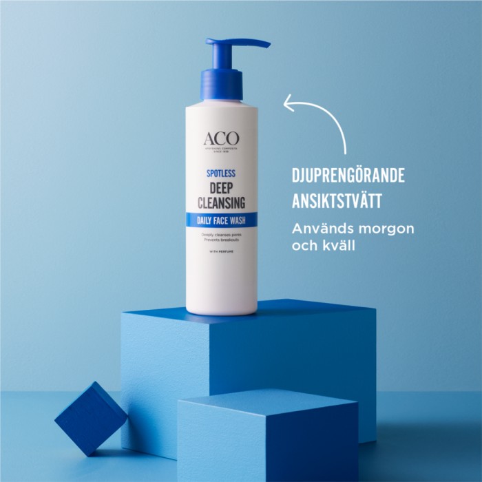 ACO Spotless Daily Face Wash är en djuprengörande ansiktstvätt för fet och oren hud. Spotless Face Wash innehåller salicylsyra som förebygger finnar och pormaskar.
