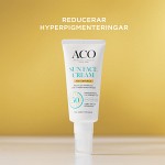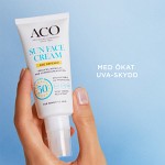ACO Sun Face Cream Age Defense SPF50 är en oparfymerad och återfuktande anti-age-solkräm för ansiktet med högt skydd (SPF 50). Solkrämen ger ett omedelbart skydd mot solens UVA- och UVB-strålar med förhöjt UVA-skydd, och bidrar till att förhindra för tidigt åldrande.