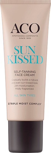 ACOs Sunkissed Face Cream går snabbt in i huden för att gradvis bygga upp en solbrun färg. Krämen använder ACO:s "Triple Moist Complex" för att ge huden en snabb och långvarig återfuktning. Kan användas under makeup.