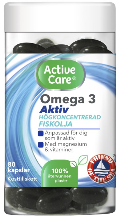 Active Care Omega-3 Aktiv är ett kosttillskott med omega-3, magnesium och vitaminer anpassat för dig som tränar.