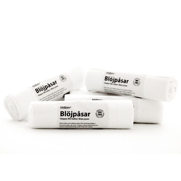 AddBaby Blöjpåsar är påsar för dig som inte använder blöjhink, och vill ha en påse som är anpassad för blöjor istället för att använda hushållspåsar. AddBabys blöjpåsar är extra täta och luktfria. Använd dem till blöjor hemma, eller när ni är på resa.