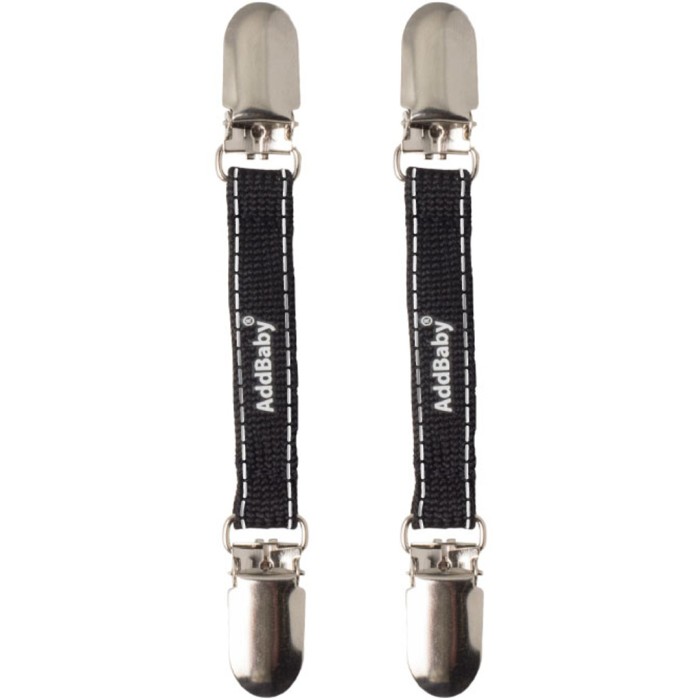 AddBabys klassiska vanthållare, nu med reflex för ökad säkerhet. Vanthållaren har rejäla clips att fästa med, som inte skadar kläderna. Kan också användas för att hänga upp mobiler i barnvagnen. Mått: 15 cm.