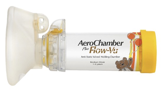 AeroChamber Plus Flow-Vu andningsbehållare med mask, medium (gul) 1 st