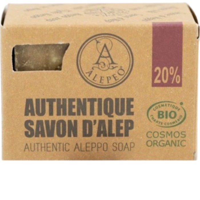 Denna traditionella Aleppotvål innehåller 20 % lagerbärsolja och kan användas både till kroppen, ansiktet och till håret. Alla tvålens ingredienser är ekologiska och den vårdande tvålen passar även torr och känslig hud.
