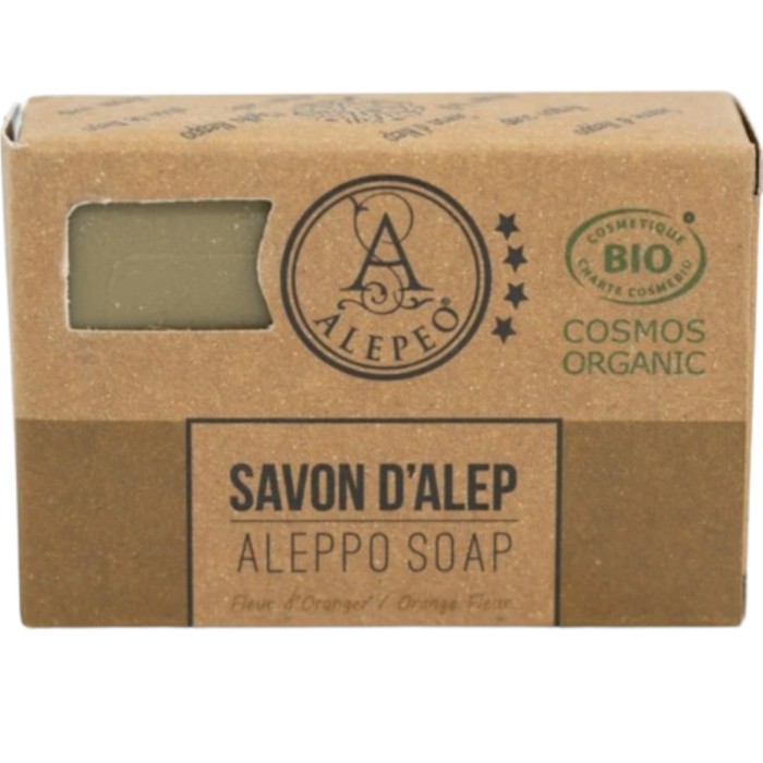 Aleppotvål som innehåller 4% lagerbärsolja. Denna tvål har även tillsats av naturlig parfymolja av Orange Flower (apelsinblomma). Tvålen är mycket vårdande och passar även för torr och känslig hud. Aleppotvålen kan användas både till kroppen och som ansiktstvål.