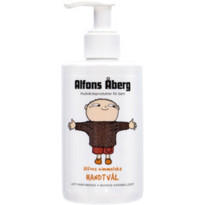 Alfons himmelska handtvål är en flytande tvål som är särskilt framtagen för att passa känsliga små händer som behöver tvättas ofta. Alfons handtvål ger ett rikligt skum och verkar återfuktande för händerna samtidigt som den gör rent effektivt utan att torka ut huden.