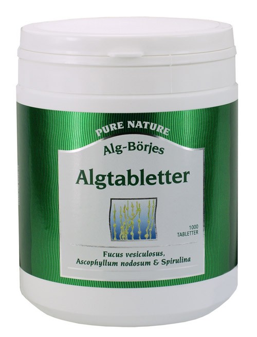 Alg-Börje Algtabletter är ett kosttillskott med havsalger som innehåller aminosyror samt mineraler och spårämnen.