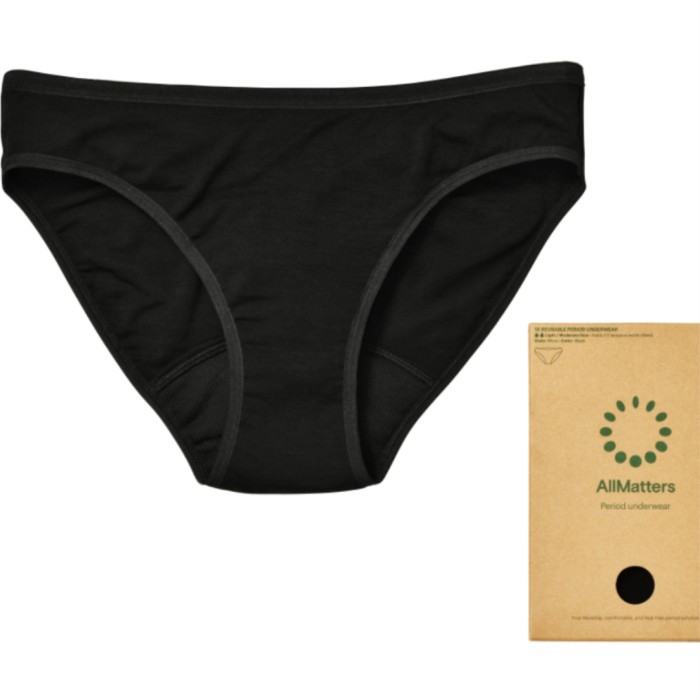 Period Underwear är en menstrosa från AllMatters. Trosorna känns som vanliga underkläder men har inbyggda absorberande lager för att fungera som mensskydd. De olika lagren absorberar mensen, och håller dig även torr, luktfri och hjälper dig undvika fläckar på kläderna. Mensunderkläder kan användas antingen istället för bindor, tamponger eller menskopp, eller som ett komplement tillsammans med ett annat mensskydd.