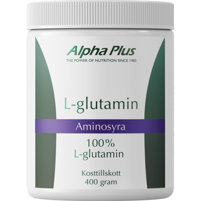 Alpha Plus L-glutamin är ett kosttillskott som innehåller den icke-essentiella aminosyran L-glutamin som är den mest förekommande aminosyran i kroppen. Alpha Plus L-glutamin innehåller 100% rent, mikrofiltrerat glutamin i fri form för snabbt upptag i kroppen.