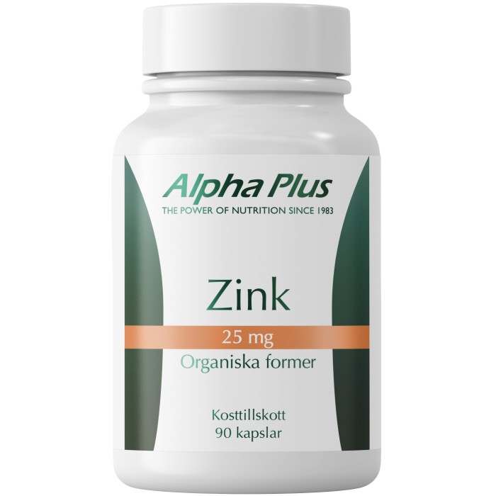 Alpha Plus Zink 25 mg 90 kapslar innehåller tre sorters zinksalter: zinkcitrat, zinkglukonat och zinkbisglycinat.