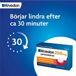 Alvedon lindrar feber, t.ex. vid förkylningar. Kan även användas för lindring av värk och smärta av olika slag: t.ex. huvudvärk, tandvärk, mensvärk, samt muskel-och ledvärk t.ex. nackvärk och ryggvärk. Alvedon kan användas av personer med känslig mage och personer med ökad blödningsbenägenhet. Läs alltid bipacksedeln noga före användning.