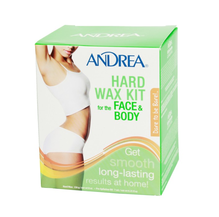 Andrea Hard Wax är ett professionellt kvalitetsvax. Det är den mest effektiva metoden för hemmabruk för att avlägsna oönskat hår från roten. Vid regelbunden användning blir återväxten märkbart finare. Kitet innehåller allt du behöver för att snabbt och enkelt avlägsna hår, inklusive olja för att förbehandla huden innan vaxningen. Inga bomullsremsor behövs.