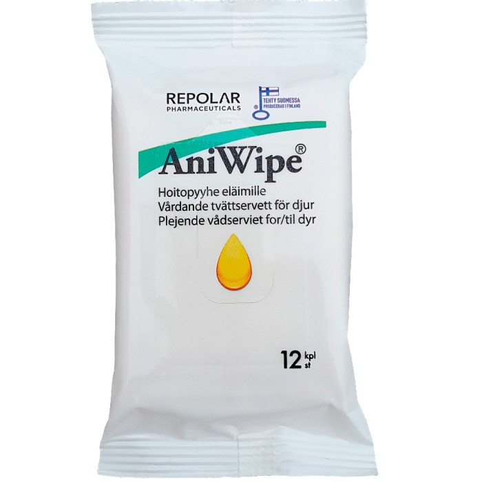AniWipe tvättservett för djur är en vårdande rengörinsservett som passar att använda i hudveck, tassar, öron samt på hud runt ögon, mun och analöppning. Tvättservetterna rengör och lämnar en skyddande hinna på huden.