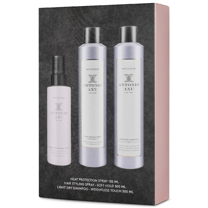 Antonio Axu Stylingkit hjälper dig att skapa salongslooken hemma! Kitet innehåller Heat Protection Spray, Hair Styling Spray Soft Hold och Weightless Dry Shampoo.