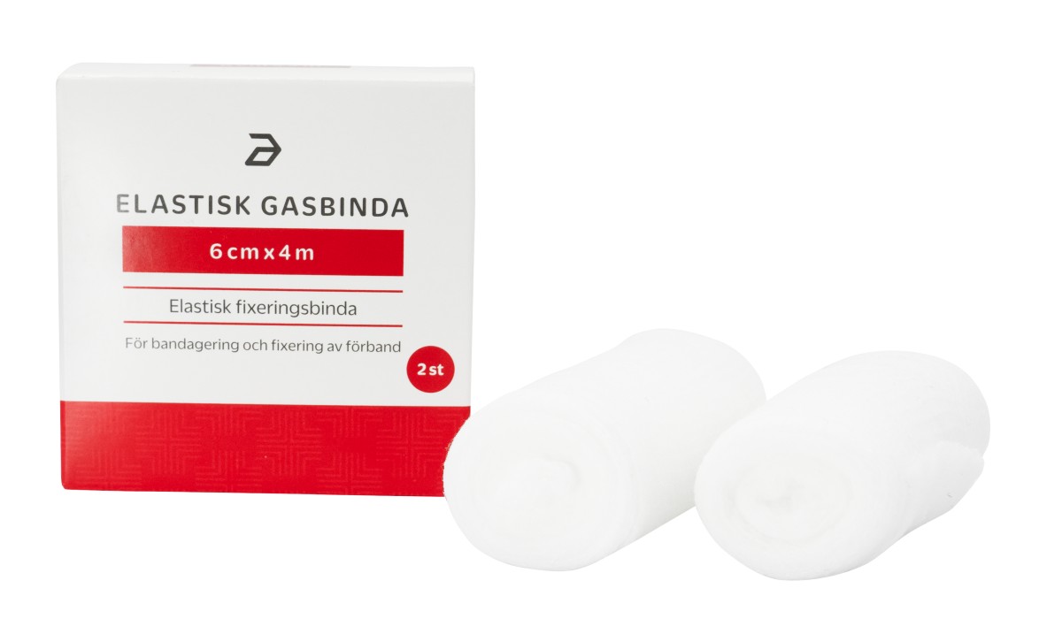 Förpackningen innehåller 2 st gasbindor i storlek 6 cm x 4 m