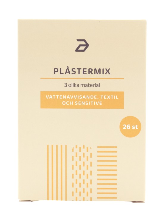Apotea Plåstermix med plåster för mindre sår innehåller 26 st plåster i tre olika material (vattenavvisande, textil och sensitive). Plåstren är hudvänliga med högabsorberande sårdyna som låter huden andas. En mix med plåster som passar olika tillfällen och behov.