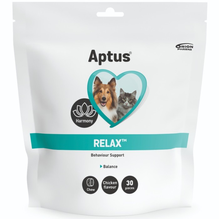 Aptus Relax tuggbitar för hund och katt innehåller en kombination av välkända ämnen, och kan bidra till ett lugnt och balanserat beteende hos din hund eller katt. Aptus Relax kan ges tex vid veterinärbesök, resa, separation, kloklippning, åska eller fyrverkerier. Aptus Relax ges 60 minuter innan önskad effekt och kan användas dagligen eller vid behov.