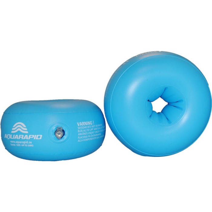 Aquarapid är runda armringar med en skumgummi-ring inuti ringarna för ökad balans och extra trygghet. Armringarna kan användas för att stimulera motoriken hos små barn när de badar.