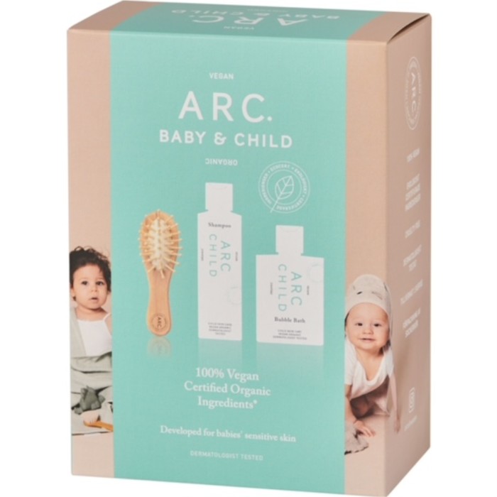 ARC Baby & Child Giftset är ett kit med hud- och hårvård för baby och barn. Produkterna i kitet är veganska och ekologiska och är speciellt framtagna för baby och barns känsliga hud och hår.