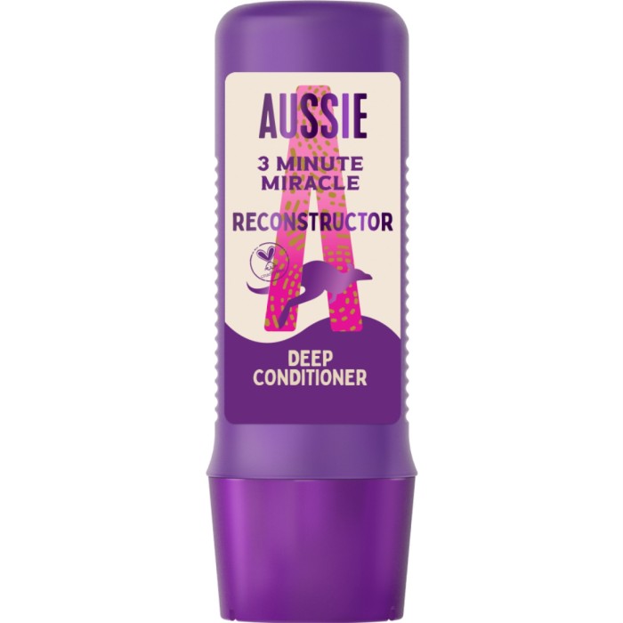 Aussie 3 Minute Miracle Reconstructor Deep Conditioner är en hårbehandling för att återuppliva torrt och skadat hår. 3 Minute Reconstructor är berikad med australisk macadamianötsolja och hjälper till att göra håret mjukt, glänsande och djupt återfuktat i upp till 3 dagar*. Vegansk formulering (utan ingredienser av animaliskt ursprung).