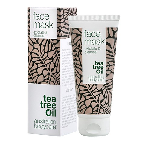 Australian Bodycare Face Mask Exfoliate & Cleanse är en lerbaserad ansiktsmask med naturlig tea tree olja (Melaleuca Alternifolia) och krossade nötskal från sandelträd som exfolierar huden.