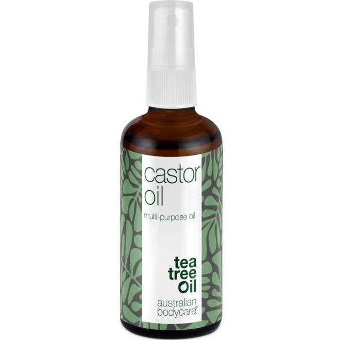Australian Bodycare Castor Oil (ricinolja) är en olja berikad med naturlig australiensisk Tea Tree Oil som kan användas för torr hud, för ögonbryns- och ögonfransvård samt torra naglar och nagelband, och för håret.