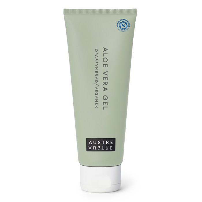 AUSTRE Aloe Vera Gel är en återfuktande gel som ger omedelbar svalka till huden. Passar bra att använda vid solsveda, insektsbett och efter rakning, eller för att lindra torr hud. Gelen innehåller 95% ekologisk Aloe vera baradensis bladjuice, utvunnen ur Aloe vera-växtens blad. Gelen är berikad med provitamin B5 och allantonin för att stärka och lugna huden. Oparfymerad.