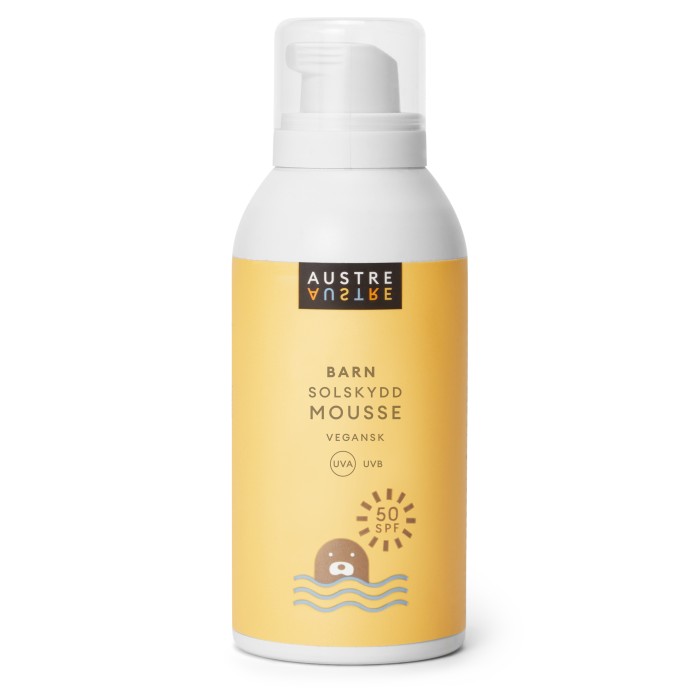 Austre solskyddsmousse har ett hudnära pH-värde och passar alla hudtyper. Är lätt att applicera och går snabbt in i huden utan att kännas klibbig. Solmoussen för barn kan användas på hela kroppen och i ansiktet.