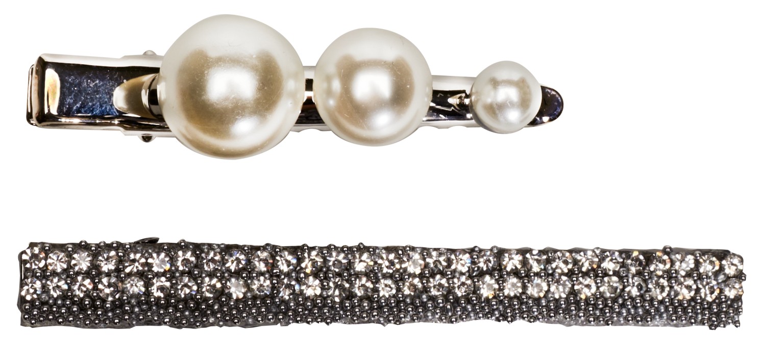 Moderiktiga hårspännen med glittersten och pärlor från Avalea som kan komplettera din look.
