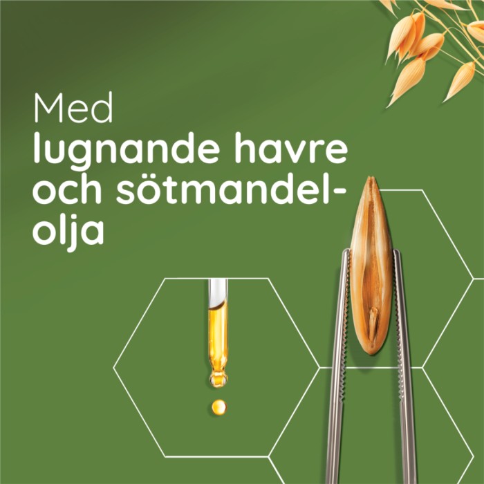 Aqua, Paraffinum Liquidum, Glycerin, Prunus Amygdalus Dulcis Oil, Avena Sativa Kernel (Oat) Flour, Hydrogenated Palm Glycerides, Cetyl Alcohol, Caprylyl Glycol, Potassium Cetyl Phosphate, Carbomer, Sodium Polyacrylate, Sodium Hydroxide, Phenoxyethanol, Parfum. [PR-0001907] Produktens ingredienslista kan uppdateras över tid. Konsultera alltid ingredienslistan som finns på den köpta produktens förpackning.