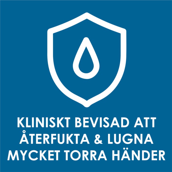 För daglig användning. Applicera i händerna och massera in. En liten klick kräm är tillräckligt för att lindra mycket torra och irriterade händer.