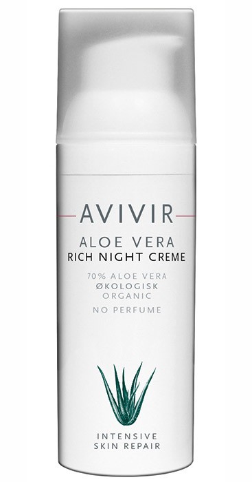 Avivir Aloe Vera Rich Night Creme är en rik nattkräm med 70% ekologisk aloe vera som tillför huden extra fukt medan du sover.
