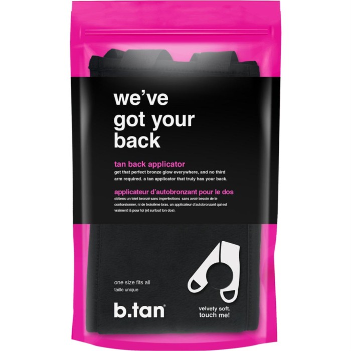 We've Got Your Back Tan Mitt är en applikatorhandske för brun utan sol-produkter som hjälper dig att komma åt på ryggen och svåråtkomliga områden. Den sammetslena applikatorn från b.tan är utformad för att på ett enkelt sätt ge en jämn och fin solbränna över hela kroppen. Applikatorn är tvättbar och återanvändbar.