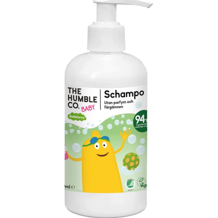 Babblarna Schampo är ett oparfymerat hårschampo för barn. Schampot kommer i en flaska med lekfullt Babblarna-motiv. Innehåller 94% naturliga ingredienser och har en mild formulering för att passa känslig hud. Fritt från doft och färgämnen.