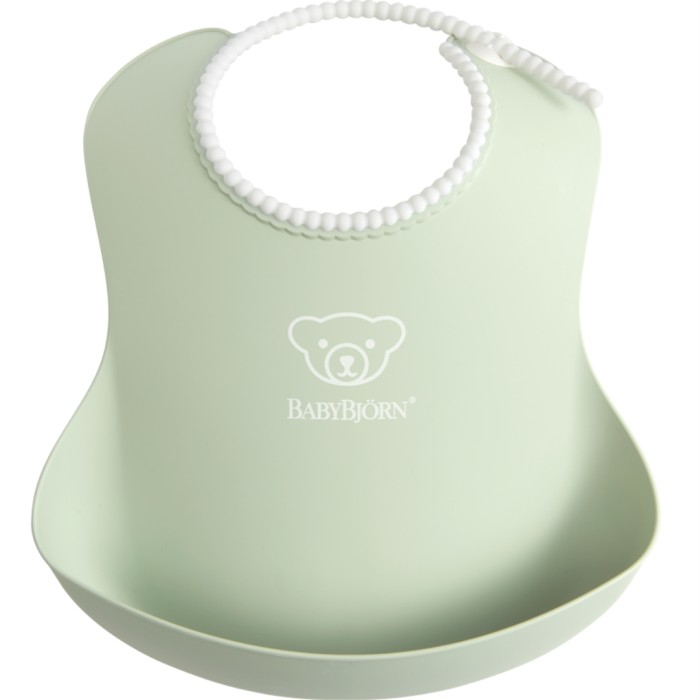 BabyBjörn Haklapp har en mjuk och skön halslinning som inte skaver. Haklappen är gjord i ett vattenavstötande material som hindrar kladd och vätska från att tränga igenom och hamna på barnets kläder. Den har dessutom en djup spillficka som håller formen, så att maten inte pressas ut när ditt barn rör sig. För barn från ca 4 månader.
