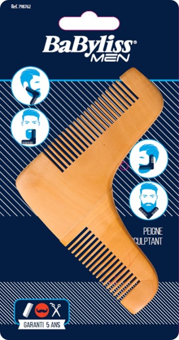 BaByliss Skäggkam Kontur är en konturkam för att trimma skägget med precision. Rundningen fungerar som mall för att trimma kanterna på skägget, och de två kammarna hjälper dig att få ordning på skägget och mustaschen. Kammen är av trä för att minska statisk elektricitet.