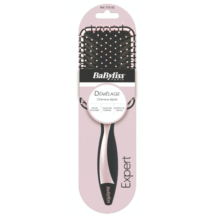 BaByliss stora kuddborste har en blank keramisk yta som gör att håret lätt glider genom borsten och minskar friktion. Detta minimerar slitaget på håret, och ger håret extra glans och mjukhet. Borstens piggar har mjuka, skyddande toppar. Ergonomiskt handtag. Borsten är perfekt för utredning av håret och passar alla hårtyper.
