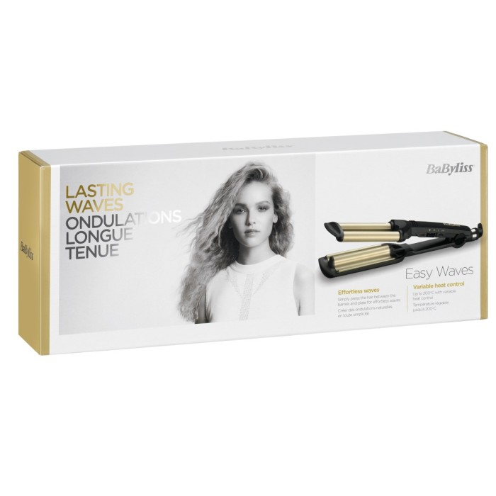 Easy Waves har tre olika temperaturer för olika hårtyper. BaByliss vågtång har keramisk beläggning för att ge en skonsam styling och den har ett roterande sladdfäste. Stylingverktyget har värmeisolerande plattor på kanterna för att undvika att du bränner fingrarna. Värmetålig matta medföljer.