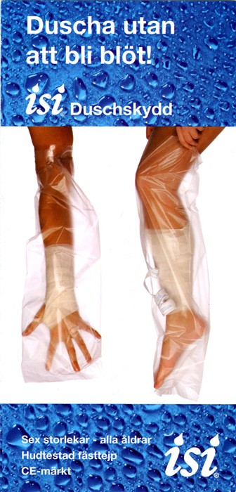 ISI bad- och duschskydd är framtaget för att hålla arm- och benskador torra vid dusch och bad i badkar. (Får ej användas vid bad i pool, sjö eller hav.)